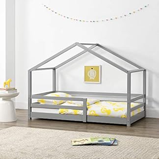 Angebot! Ursprünglicher Preis war: 125,79 €118,39 €Aktueller Preis ist: 118,39 €.Produkt kaufen[en.casa] Kinderbett Knätten Hausbett Bodenbett 80 x 160 cm Holzbett für Kinder mit Rausfallschutz Kiefernholz Bettgestell mit Lattenrost Hellgrau
